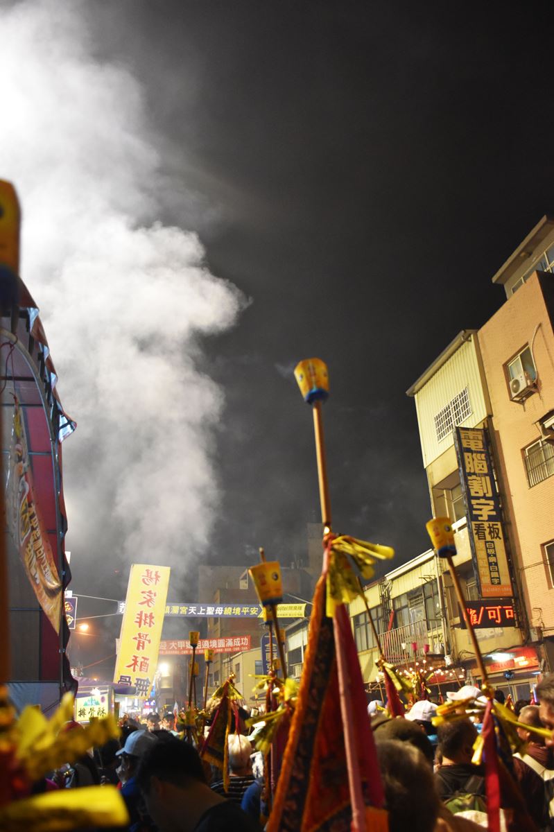 En continuant notre route, un Taïwanais pilote d’hélicoptère nous aide pour trouver notre train, nous lui demandons s’il connait la date du Dajia Mazu et il dit que non (le stress s’intensifie), il cherche sur son téléphone et constate qu’il y a dans l’actualité beaucoup de monde à l’endroit où on se rend, se qui nous rassure un peu. Une fois dans le train, nous voyons quelques personnes avec des bâtons de pèlerinage, on souffle encore un peu. Bref en gros on prend le train (Qui pour le première fois, a un petit problème et s’arrête sur les voies pendant un temps), et on arrive sur place.