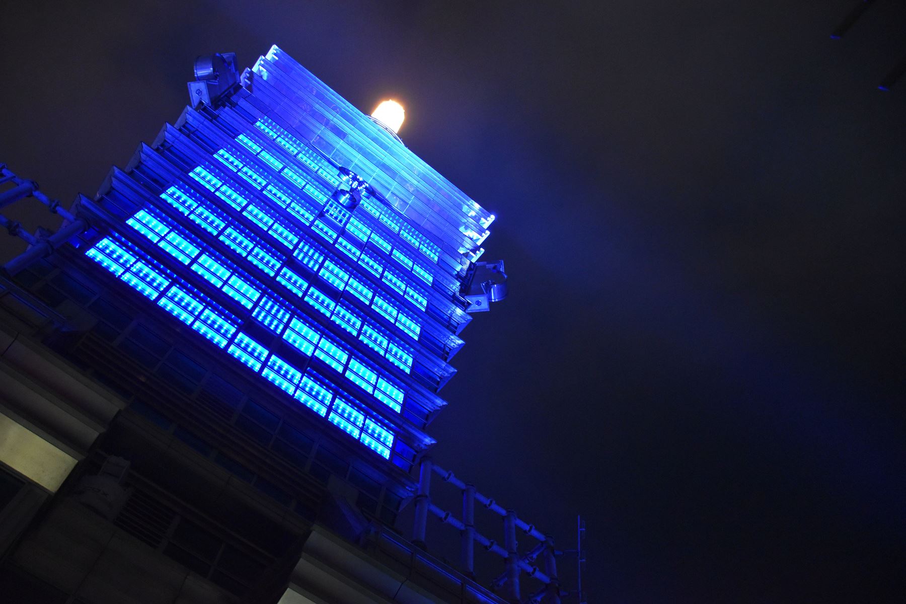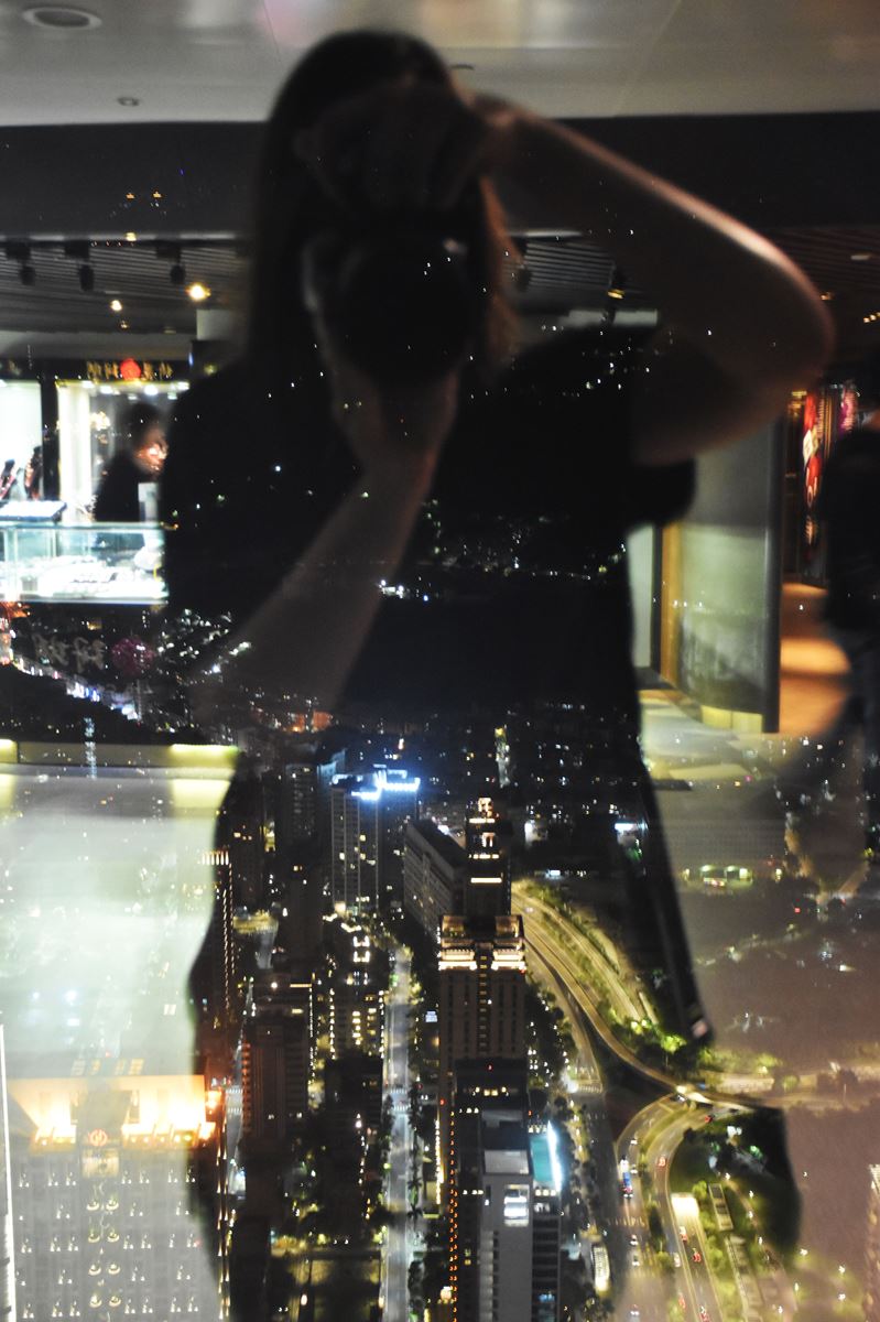 Une fois la nuit tombée, on prend des tickets pour aller tout en haut de la tour, heureux d’enfin pouvoir apprécier la vue sur cette belle ville. L’ascenseur est super rapide avec un petit plafond étoilé de toute beauté. Et une fois arrivé en haut… Du blanc, tout n’est que blanc… Nous sommes dans les nuages, super, visibilité nulle… On ne voit rien, le temps ne se dégagera pas… Nous finissons donc par descendre. Triste histoire.
